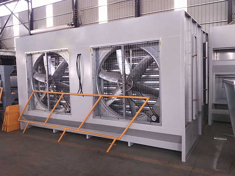1、結構:由柜子、風機、水簾板、水泵、控制開關組成。