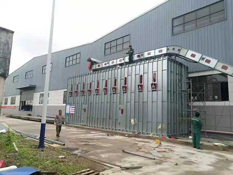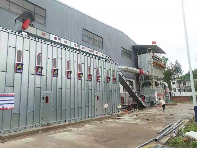 5、火情檢測盒滅火系統:設備出風口設置火情檢測探頭用于火情檢測。滅火噴淋裝置安裝于主風筒內,用于滅火,以有效保護系統的運行安全。探測器探測到火情時,立即報警,關閉主機,同時開啟消防泵進行噴淋滅火。